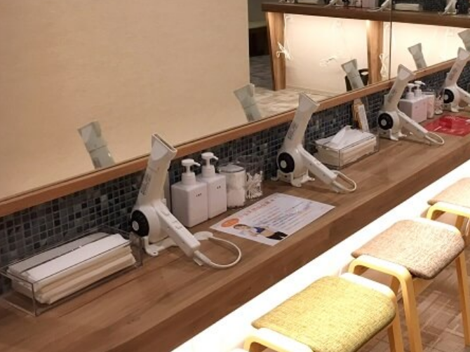 化粧水やメイク落とし、ドライヤーなどが完備されています。