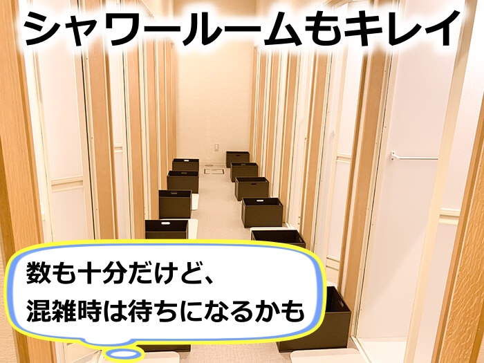 シャワールームは約10ブースあり、キレイに管理されていて快適に使えました。