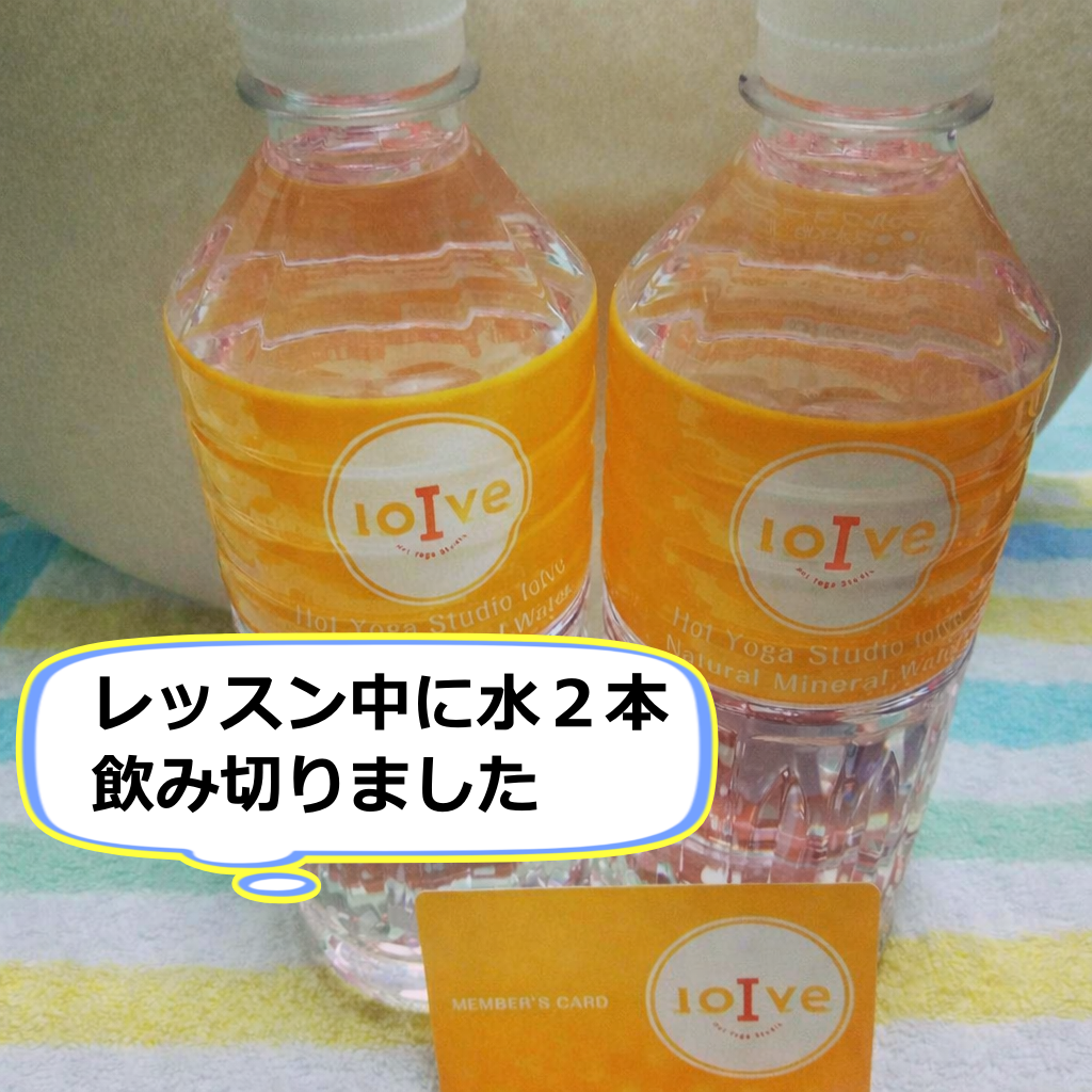 最初に550mlのお水を2本もらえましたが、レッスン中にすべて飲み切ったので、不安な人は予備の水を用意しておくと安心です。